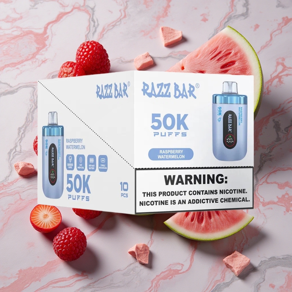 Razz Bar 50K Puffs Sigaretta elettronica usa e getta Lampone Anguria Ricaricabile USB-C